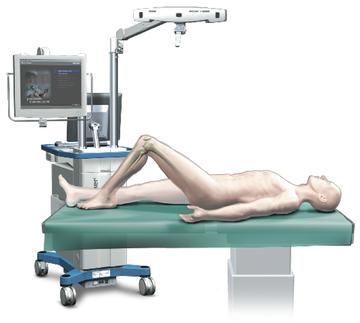Computer navigation is a technique to help improve the accuracy of the alignment of the knee replacement. Infrared trackers are attached to the thigh and shin bone and a computer map of the knee is generated. The trackers can then be attached to cutting guides and the computer can then help the surgeon position these with up to half a degree of accuracy. This allows for very precise bone cuts to be made.